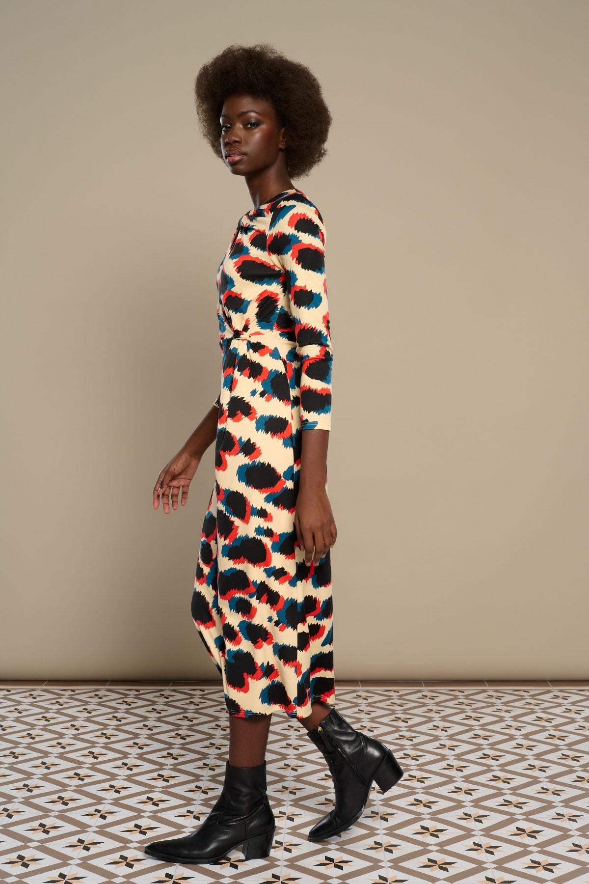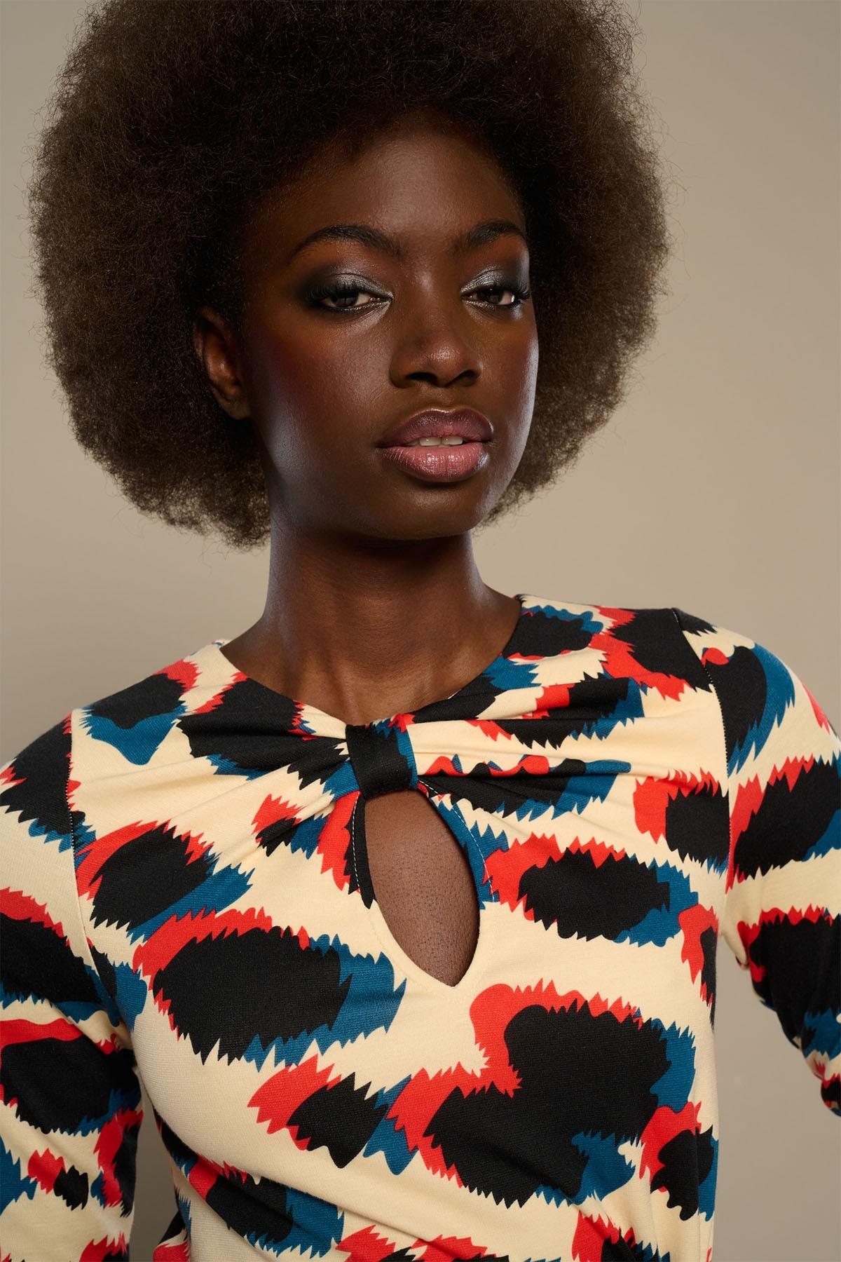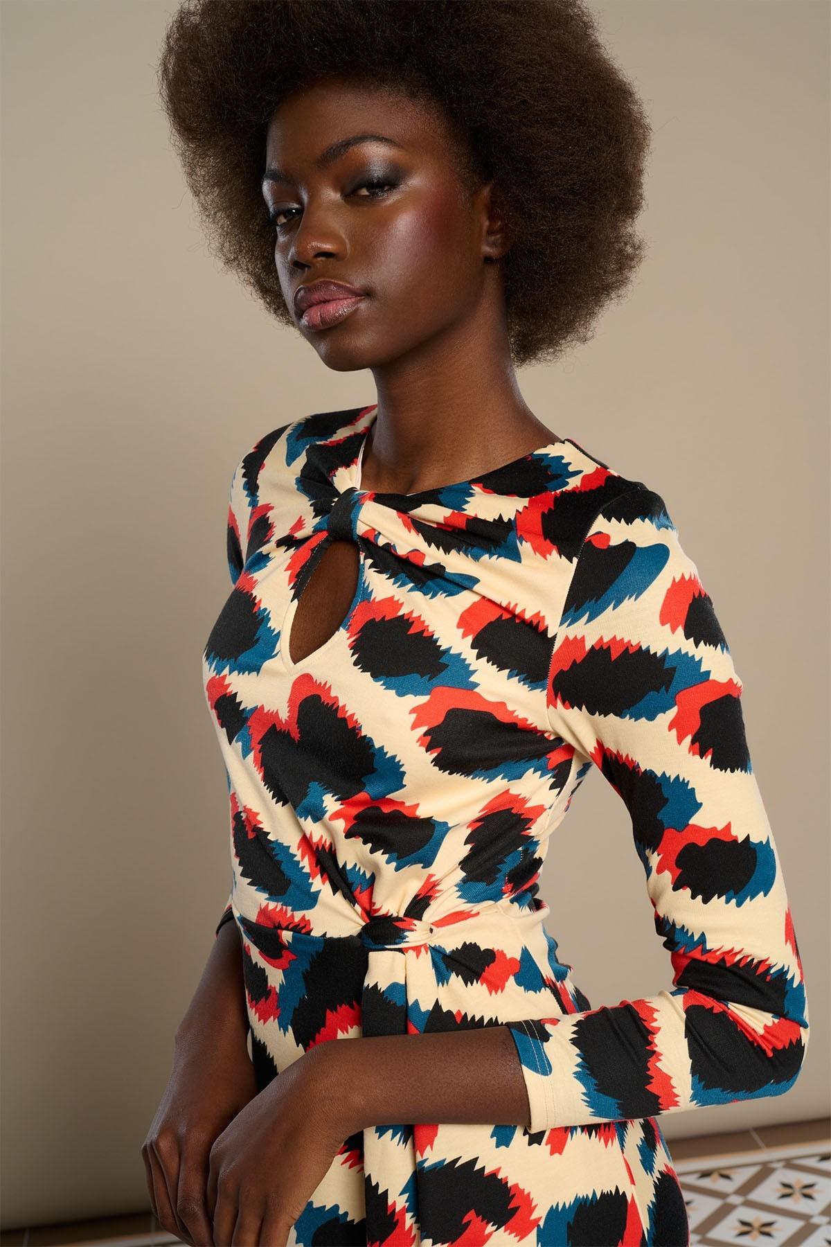 Vestido midi de cuello redondo y escoute cutout. Manga larga. Ajustado en cintura. Forro interior. Cierre en espalda con cremallera oculta en costura!!